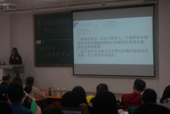 初赛比赛于17:30结束,图书馆金智老师对活动进行了总结,鼓励中大新华学子要勇敢追梦。作为中大新华的学子,要把握好人生,把握好人生的未知性,把握好人生的抉择,把握好人生美好的爱情、把握好人生中理想与现实的差距,怀一颗积极向上的心,揣一颗事事平常心,以书为马,追梦趁年华,走好奇妙人生的每一步!