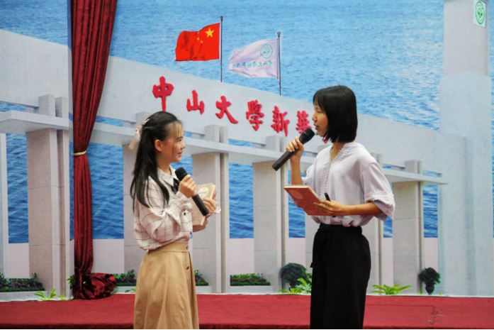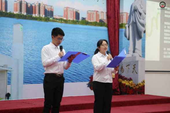 王庭槐校长致词后,由新华读书社的陈悦、曾子昊同学朗诵王庭槐校长和好友关一龙在校读书期间创作的诗歌《致老师》,这首诗是1977年恢复高考后,王庭槐校长考上中山大学(原中山医学院),作为恢复高考后的首届大学生,也就是77级中山医学院学生,发表在当时的《中山医学院》校报上的诗歌。