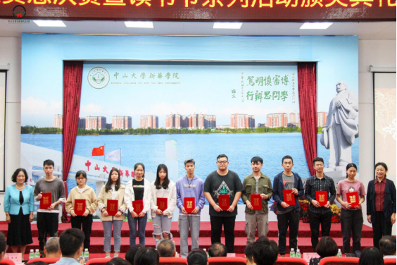 接着廖振亮副校长为“图书馆杯主题海报创意设计赛奖”、“我与书房的故事”案例征集赛奖、“品书知日本”2018 征文大赛颁奖。廖振亮副校长还为“中华经典美文诵读大赛奖”、“经典阅读人文知识竞赛奖”、《习近平用典》读后感征文大奖赛获奖代表颁发获奖证书。
