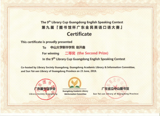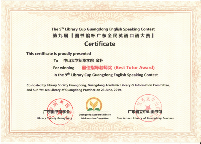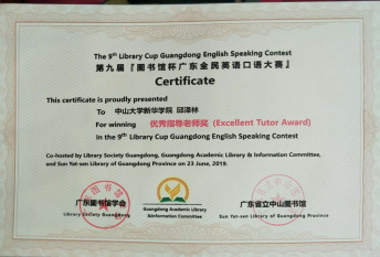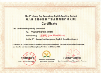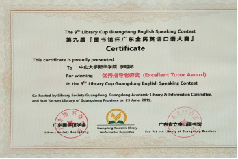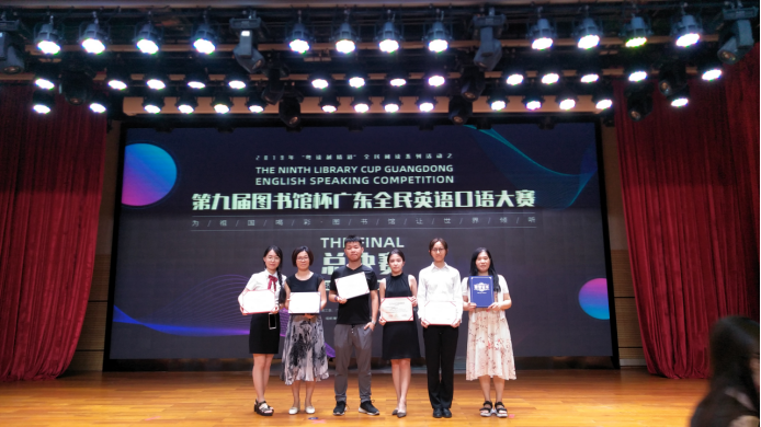 2019年6月23日,我校图书馆活动负责人唐玉佳老师、外国语学院李明娇和金朴老师;赵开鑫、陈嘉佳和蔡冬妮同学受邀参加由广东图书馆学会、广东省高校图工委、广东省立中山图书馆主办的2019年第九届“图书馆杯”广东全民英语口语风采展示活动广东赛区总决赛。