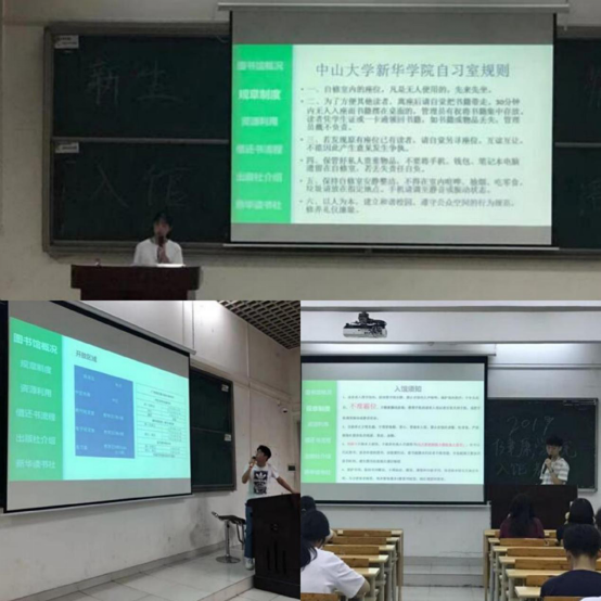 为了让2019级新生尽快了解并熟悉图书馆借阅环境,高效利用图书馆借阅资源。2019年10月16日,由图书馆主办,新华读书社承办的“2019级新生入馆教育”活动在广州校区正式开展。本次讲座由新华读书社成员担任培训,授课共计6场次。包括护理学院、药学院、生物医学工程学院、听力与语言科学系、资源与城乡规划系、康复医学系以及健康管理学院七个院系在内共706名新生聆听了讲座。
