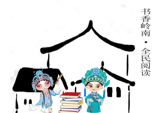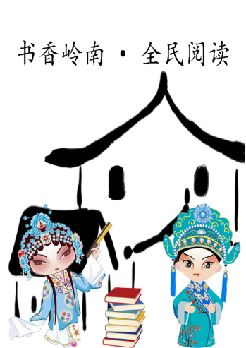 作品说明:本海报,使用了两个岭南文化特色,为岭南建筑手绘,及岭南文化名片粤剧人物,只选取性别不同的两人分别代表人类群体,男和女。书摆在二人其间,书中有故事,戏为书之狂。