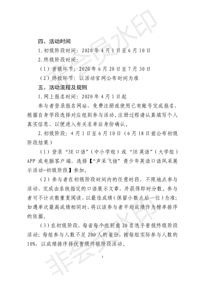 ③ 初级阶段时间:2020年4月1日至6月10日(6月18日前公布初级阶段结果)