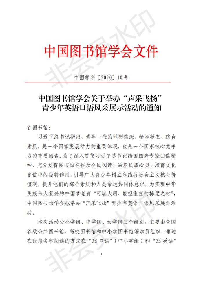 中国图书馆学会关于举办“声采飞扬”青少年英语口语风采展示活动的通知