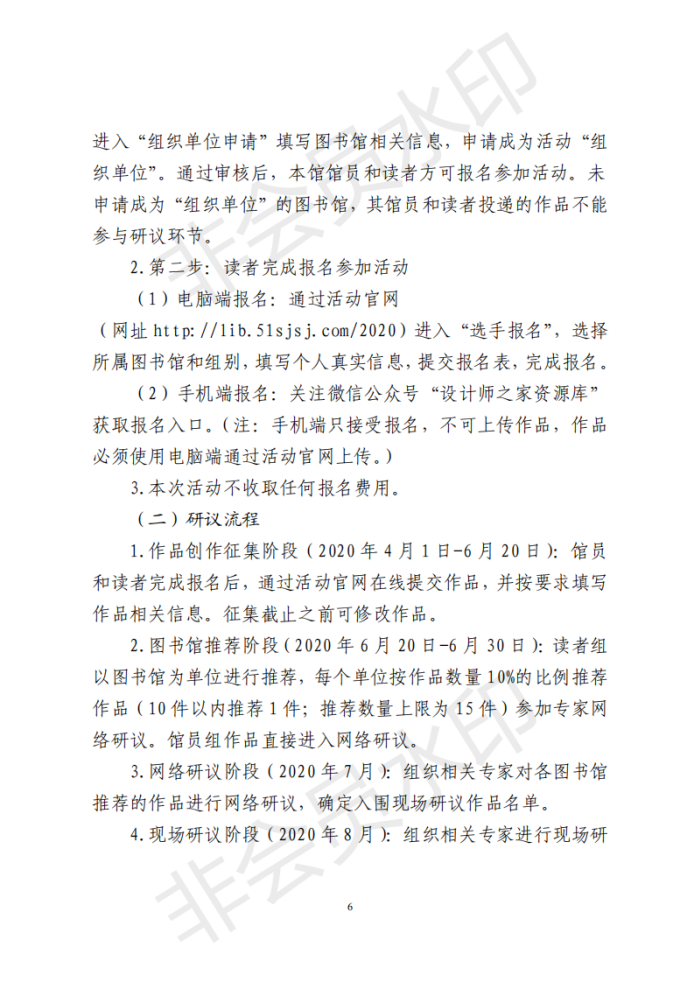 (1)电脑端报名:通过活动k8体育官网 (网址 http://lib.51sjsj.com/2020)进入“选手报名”,选择 所属图书馆和组别,填写个人真实信息,提交报名表,完成报名。 (2)手机端报名:关注微信公众号“设计师之家资源库” 获取报名入口。(注:手机端只接受报名,不可上传作品,作品 必须使用电脑端通过活动k8体育官网上传。) (3) 本次活动不收取任何报名费用