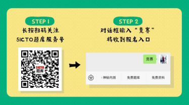 ⑦ 报名方式:扫码关注51cto题库服务号;回复文字“竞赛”,将收到报名入口;本次大赛限在校大学生参与,全程免费