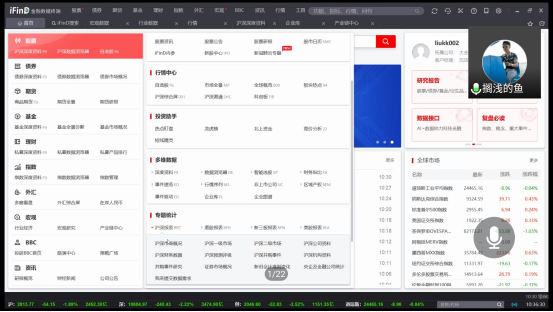 主讲老师在线讲解介绍同花顺ifind各数据库资源使用方法和技巧