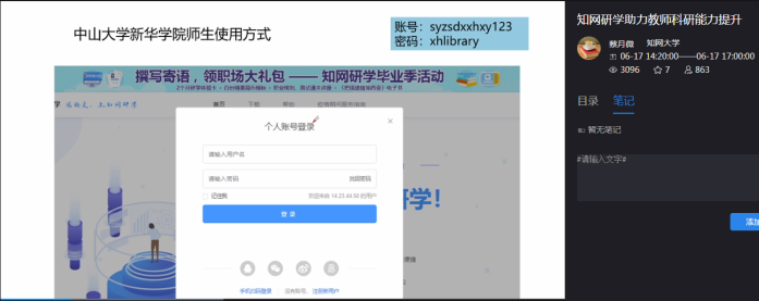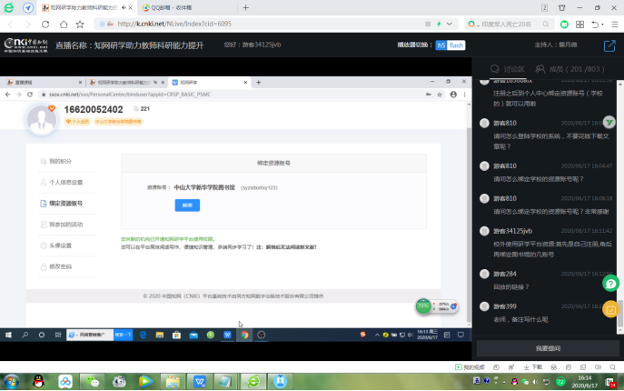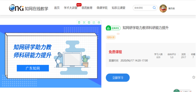 2020年6月17日下午,由图书馆主办的线上讲座:“校外使用中国知网研学平台——助力师生教学科研学习能力提升”准时开讲。