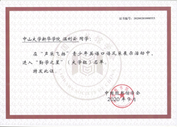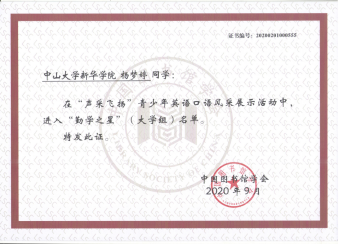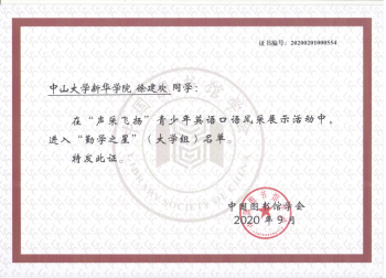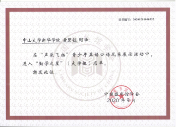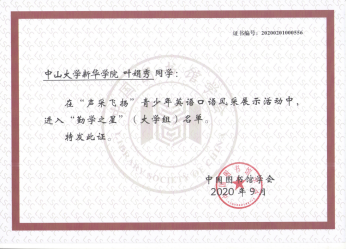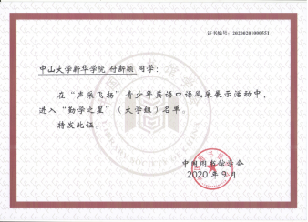 我校读者获2020年全国"声采飞扬"青少年英语口语风采展