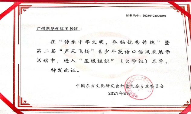 2021年8月24日,由中国东方文化研究会红色文旅专业委员会主办、「3e英语」提供k8体育的技术支持服务的“传承中华文明,弘扬优秀传统”暨第二届“声采飞扬”英语口语风采展示活动(大学组)圆满结束!