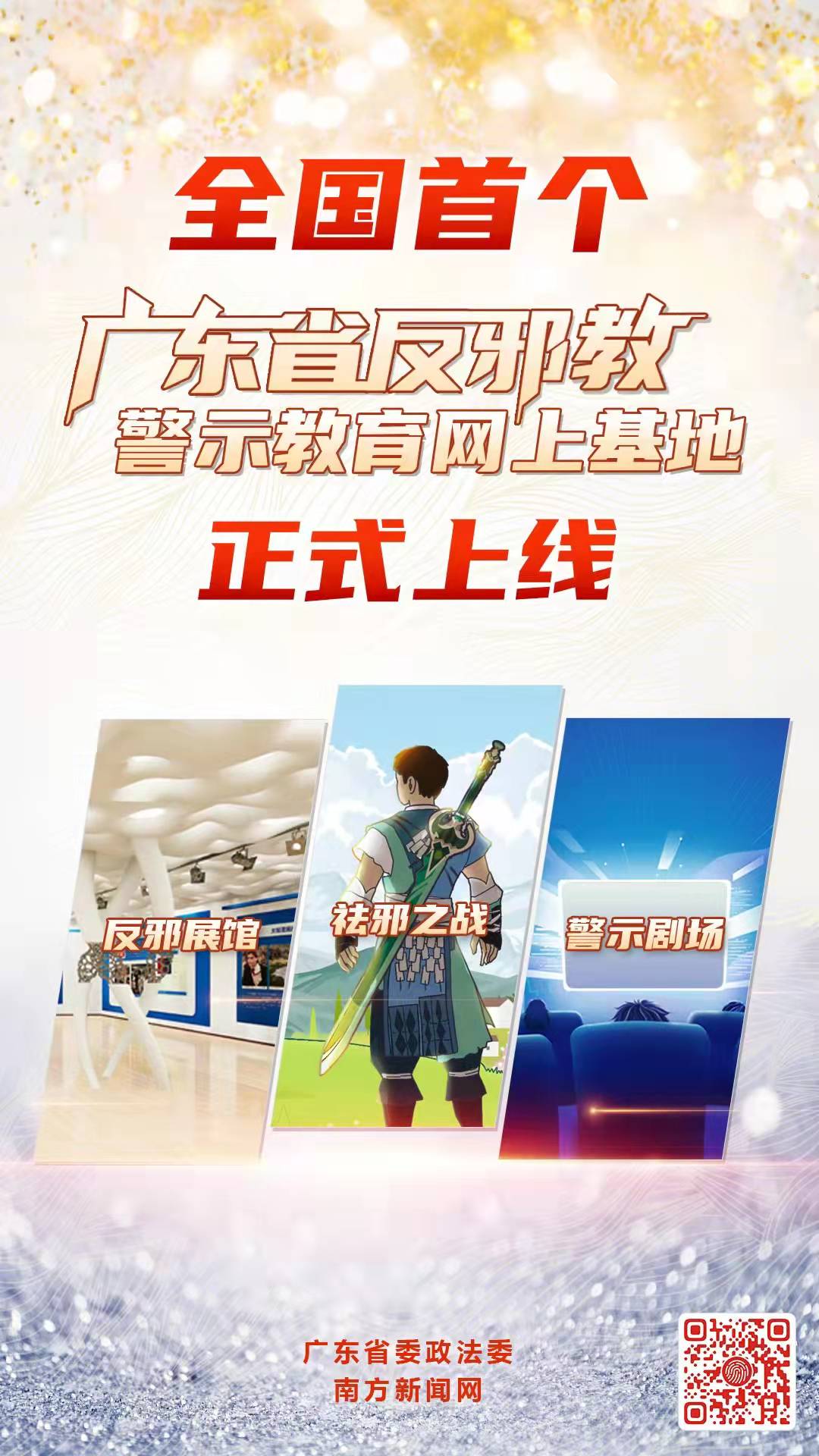 南方网讯(记者/何聪)为进一步筑牢广大党员干部和人民群众反邪教思想防线,2021年12月10日,由广东省委政法委联合南方新闻网创新制作的全国首个“反邪教警示教育网上基地” ()正式上线,为我省进一步深化邪教问题源头治理、提高全社会识邪辨邪能力营造了良好的舆论氛围。