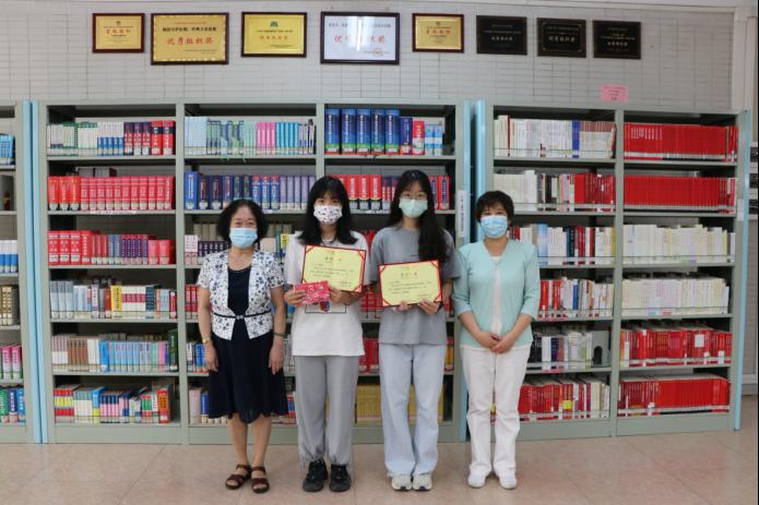 图书馆钟伟珍副馆长(左一)与生态文明知识竞赛东莞校区优秀奖读者合影