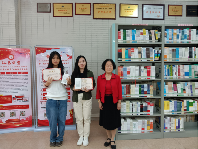 图书馆副馆长钟伟珍(右一)与东莞校区获奖者合影
