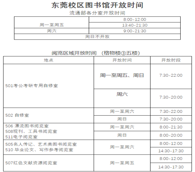 (2)广州校区中区图书馆按正常时间开放。