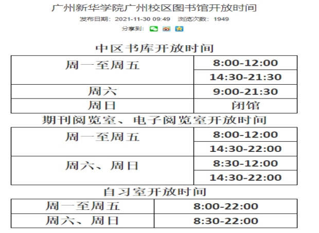 1. 广州校区图书馆开放安排