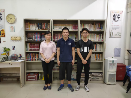 马士基集装箱工业有限公司职员马姗姗(左1)和图书馆接受捐赠的老师、助理