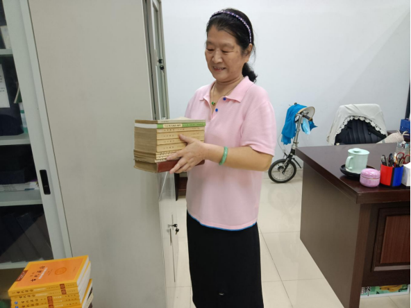 李小梅教授在东莞校区办公室向图书馆捐赠个人珍藏书刊
