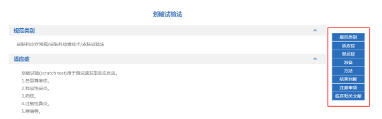 在操作规范的细览里,根据需要查看操作规范的规范类别、适应症、禁忌症、准备、方法、结果判断、注意事项以及临床相关文献。还可以进行临床相关文献的下载。(图2-39、40)