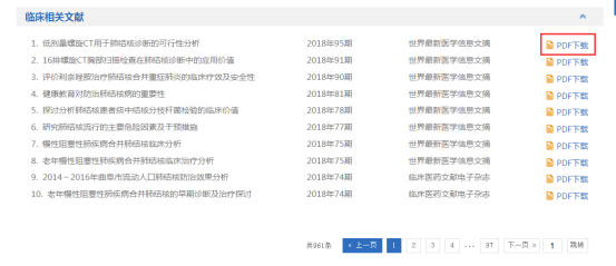 在临床路径的细览里,可以查看原文以及临床相关文献。还可以进行临床相关文献的下载。(图2-29、30)
