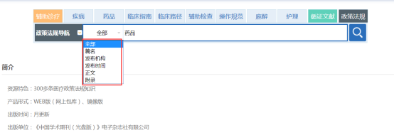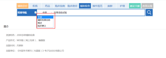 在诊疗知识库k8凯发百家乐首页的数据库列表区中直接点击需要检索的数据库,进入单库检索页面。(图2-4)