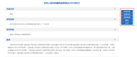 在政策法规的细览里,根据需要查看政策法规的内容分类、发布时间、发布机构、附录、正文等相关内容。(图2-58)