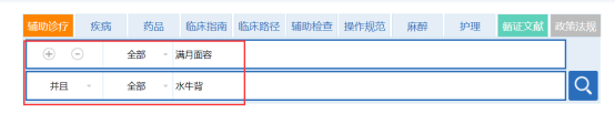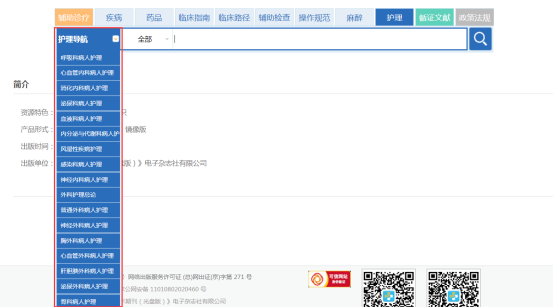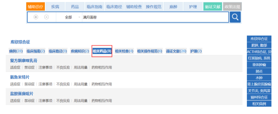 点击某一疾病下的病例、临床指南、临床路径、疾病知识、相关药品、相关检查、相关操作规范、循证文献和护理可直接在各库中查看此疾病的相关信息。(图2-8)