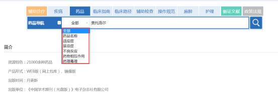 根据检索需求可选择药品导航进行检索。(图2-20)