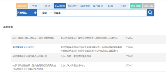 在临床指南的检索框中输入检索内容,以“高血压”为例。(图2-22)