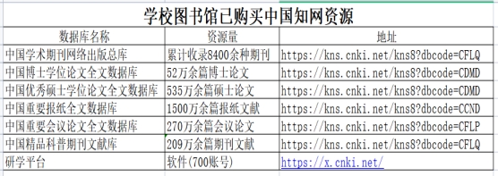 (2)中国知网:已购买6个数据库资源 1个软件。
