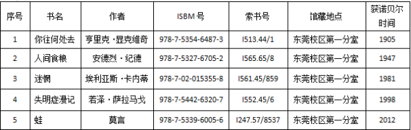 诺贝尔文学奖是根据诺贝尔1895年的遗嘱设立的五个诺贝尔奖之一,该奖旨在奖励在文学领域创作出具有理想倾向之最佳作品者。本期图书馆向读者推荐五本诺贝尔文学奖作品,让我们一起品读经典,与大师同行。