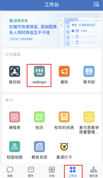 第一步:打开企业微信,点击工作台→公共服务→webvpn