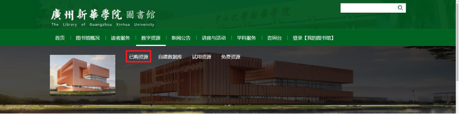 第二步:点击导航栏中“数字资源”→已购资源