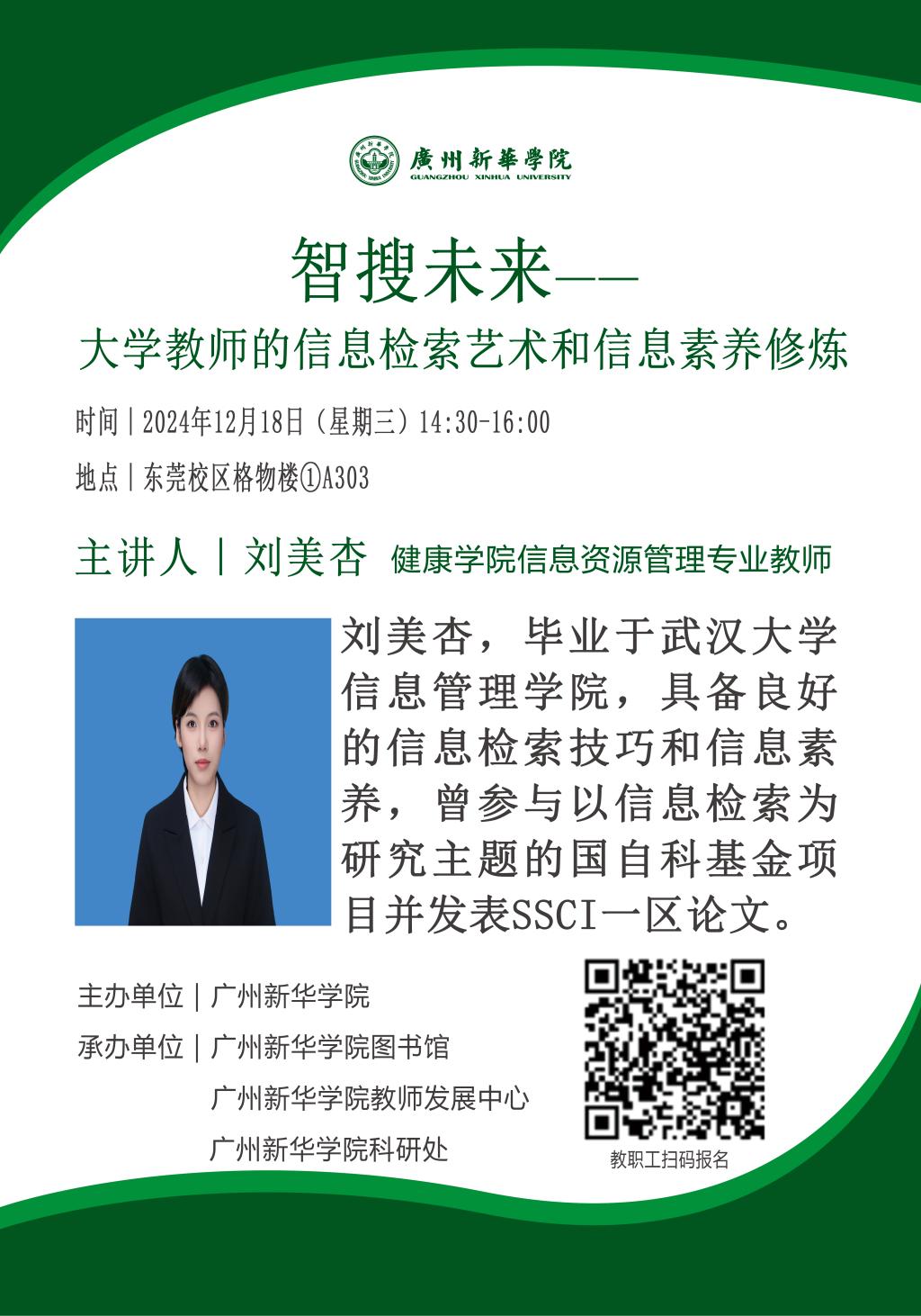 讲座主题:智搜未来——大学教师的信息检索艺术和信息素养修炼