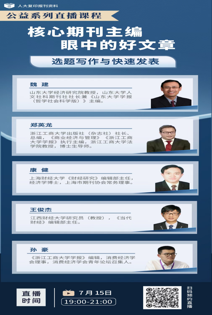 扫描下方 “人大复印报刊资料” 视频号二维码,预约直播。