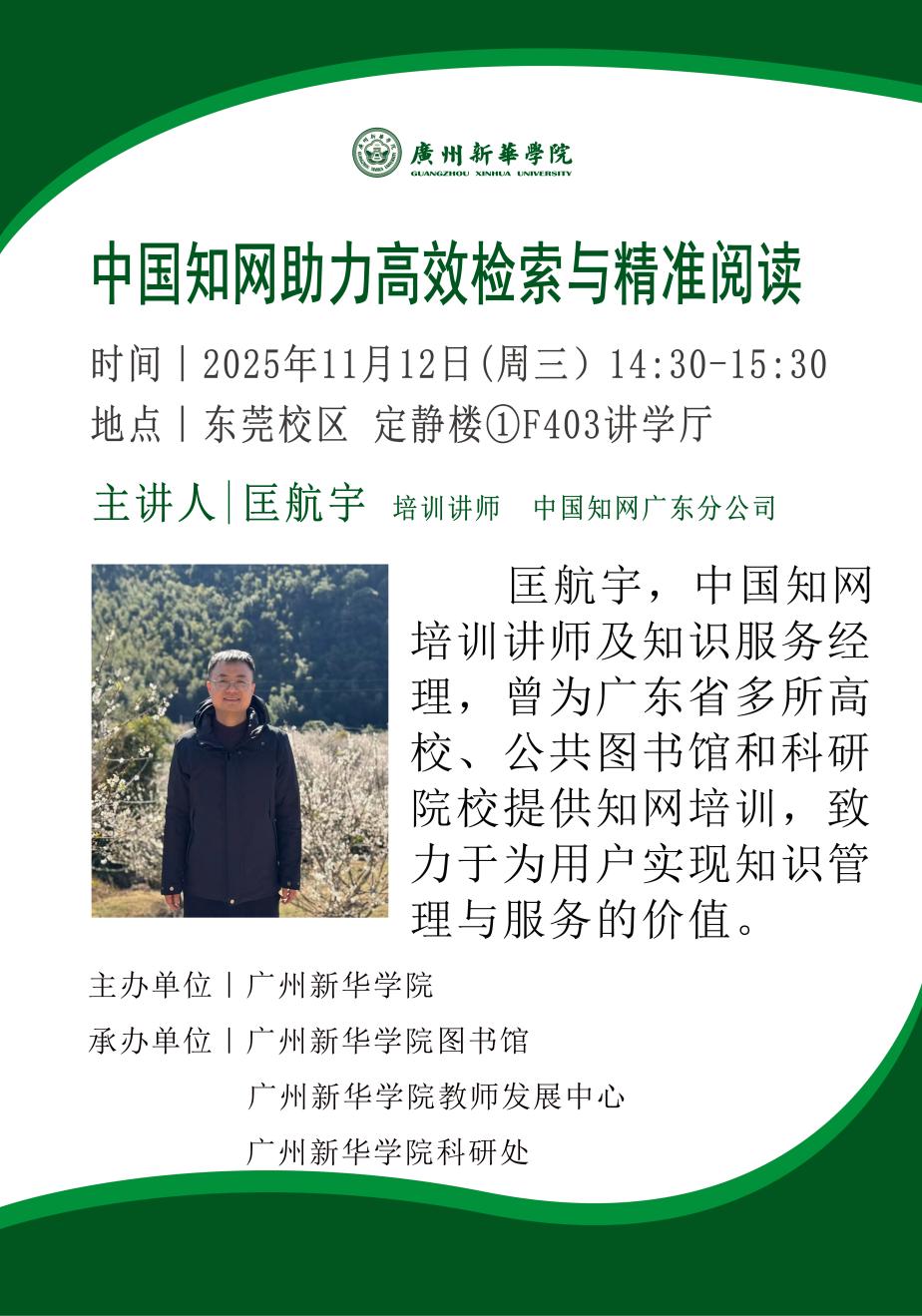 讲座主题:中国知网助力高效检索与精准阅读