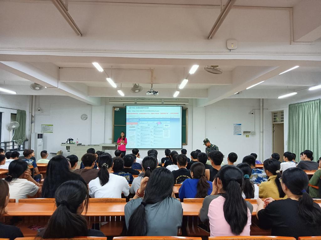 新华读书社工作人员为继续教育学院新生做培训讲座现场