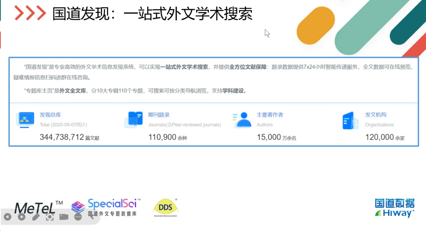 在 metel 自主学习平台的讲解环节,陈帅楠着重强调其独特优势。作为拥有专利权且连续动态更新的高校英文多媒体课程资源学习平台,metel源源不断地输送前沿优质学习内容,助力师生拓宽学术视野,提升专业素养。而specialsci 外文专题数据库则是科研选题的“指南针”,能驱动科研选题升级,助力师生精准锚定学科前沿动态,挖掘出更具创新性和实用性的科研方向。metel外文资源库在学科建设与人才培养方面发挥着关键作用,教师可借此优化教学内容与方法,学生得以接触更先进全面的学科知识,形成学科发展与人才培养的良性循环。dds博硕论文库则是挖掘学科热点的“利器”,帮助师生快速掌握学科领域研究热点与发展趋势,为教学科研提供有力参考。