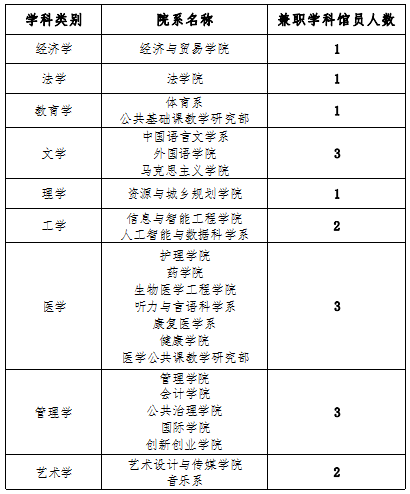 根据我校院系和教学单位的设置,兼职学科馆员按经济学、法学、教育学、文学、理学、工学、医学、管理学、艺术学九个学科组建服务团队,原则上每个学科类别设置若干名兼职学科馆员,未来逐渐发展成每个院系或教学单位设置1名兼职学科馆员。